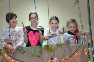 Oglądaliśmy teatrzyk kukiełkowy poprowadzony przez profesjonalnego aktora łódzkiego teatru „Arlekin” oraz sami mogliśmy nie tylko go zobaczyć ale także w nim zagrać. A ostatniego dnia naszej przygody z aktorstwem wybraliśmy się na wędrówkę do muzeum kinematografii, w którym zobaczyliśmy pierwsze kamery, kukiełki, bohaterów .