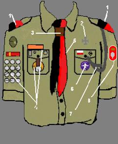 4. plakietki lub inne przypinki (plakietki kursów nad prawą kieszenią, plakietki imprez na prawej kieszeni)
